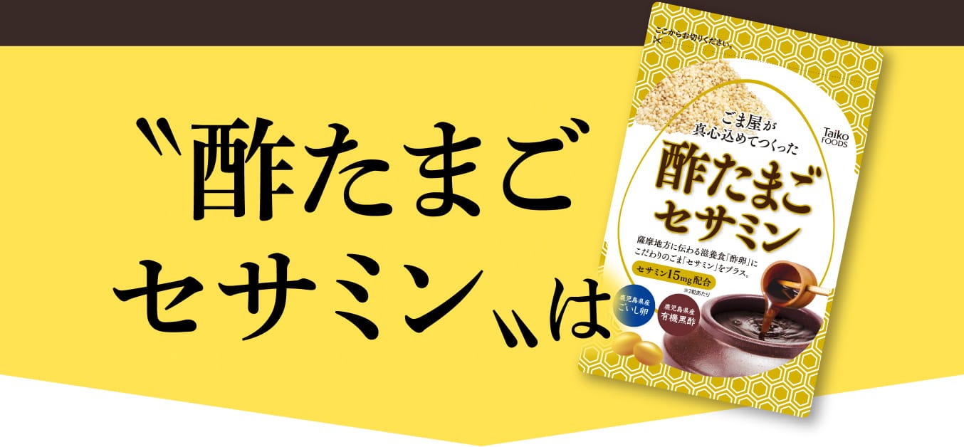 セサミンとは、ごま1粒にほんの1%未満しか含まれない希少な成分。若々しさを維持するうれしい健康成分として注目されています。『酢たまごセサミン』には、希少なセサミンを1日の目安2粒に15㎎(ごま約1200粒分)配合しています。